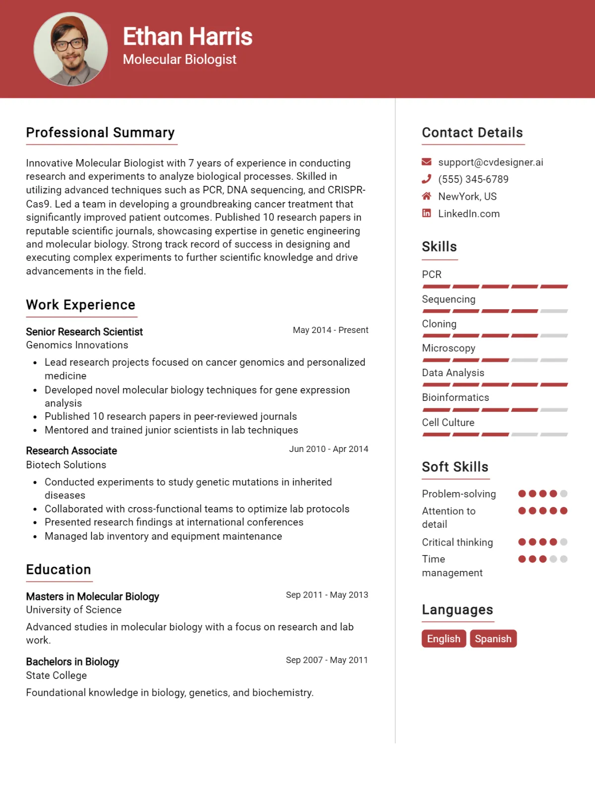 Sample Molecular Biologist CV for Inspiration